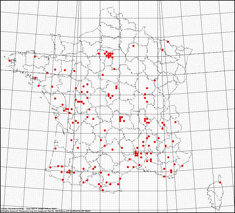 Longnes (72) [Cicada orni; Cymbalise en soirée longuement, non réentendue les jours suivants. Posée sur le tronc d'un thuya chez le voisin. Détermination sonore uniquement. Je suis originaire de l'Aude et pratique l'ornithologie depuis plus de 30 ans (chants et cris maîtrisés). Je viens de retrouver cette observation dans mon carnet de note en recherchant des données anciennes de coléoptères longicornes.; La Hécherette; Latitude 48.027152° Longitude -0.079454°; MUR Patrick; murpatsyl@gmail.com; 15/07/2006] (Carte)