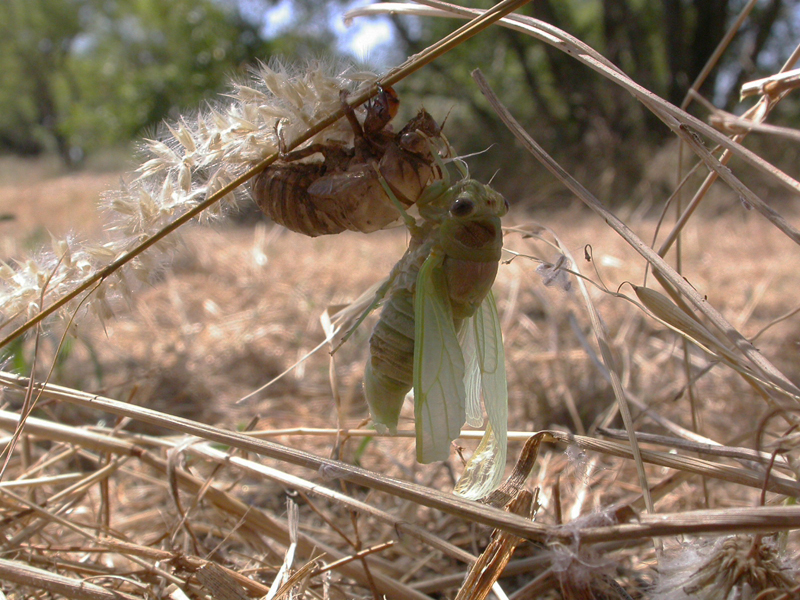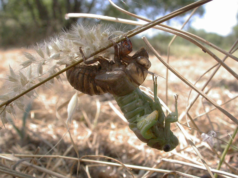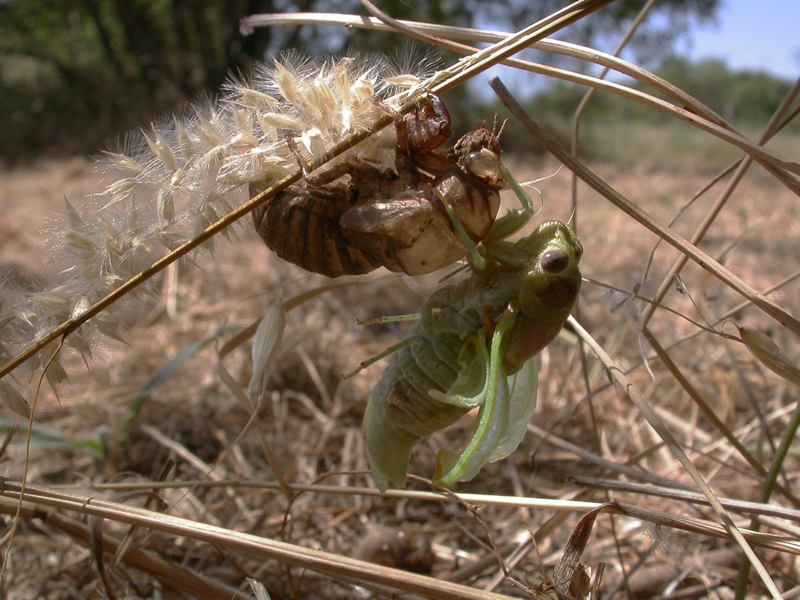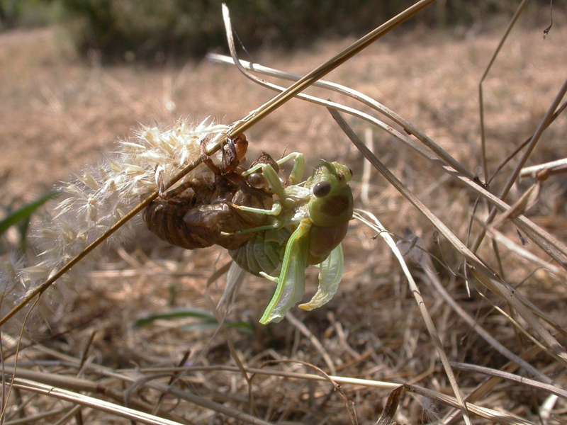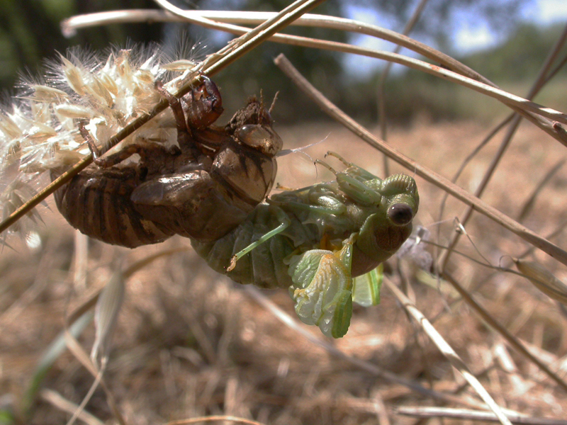 14h23 : ça y est, la cigale est entièrement sortie de sa dépouille larvaire.