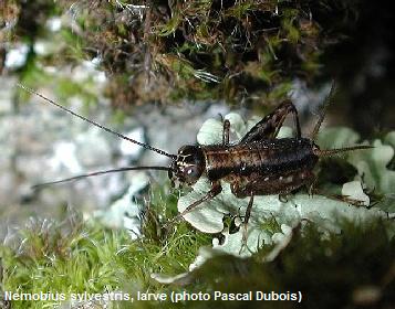 Nemobius sylvestris est également de petite taille (adultes : 10 mm) et de couleur plus foncée que les