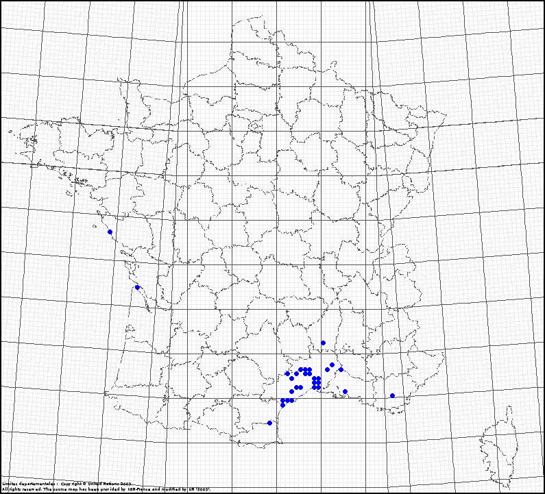 VIAS (34) [Pelobates cultripes; ; mars 2000; Xavier Rufray; présence; long/lat WGS 84 : 3.356268 43.332233; donnée CEN L-R n° 10002] (Carte)